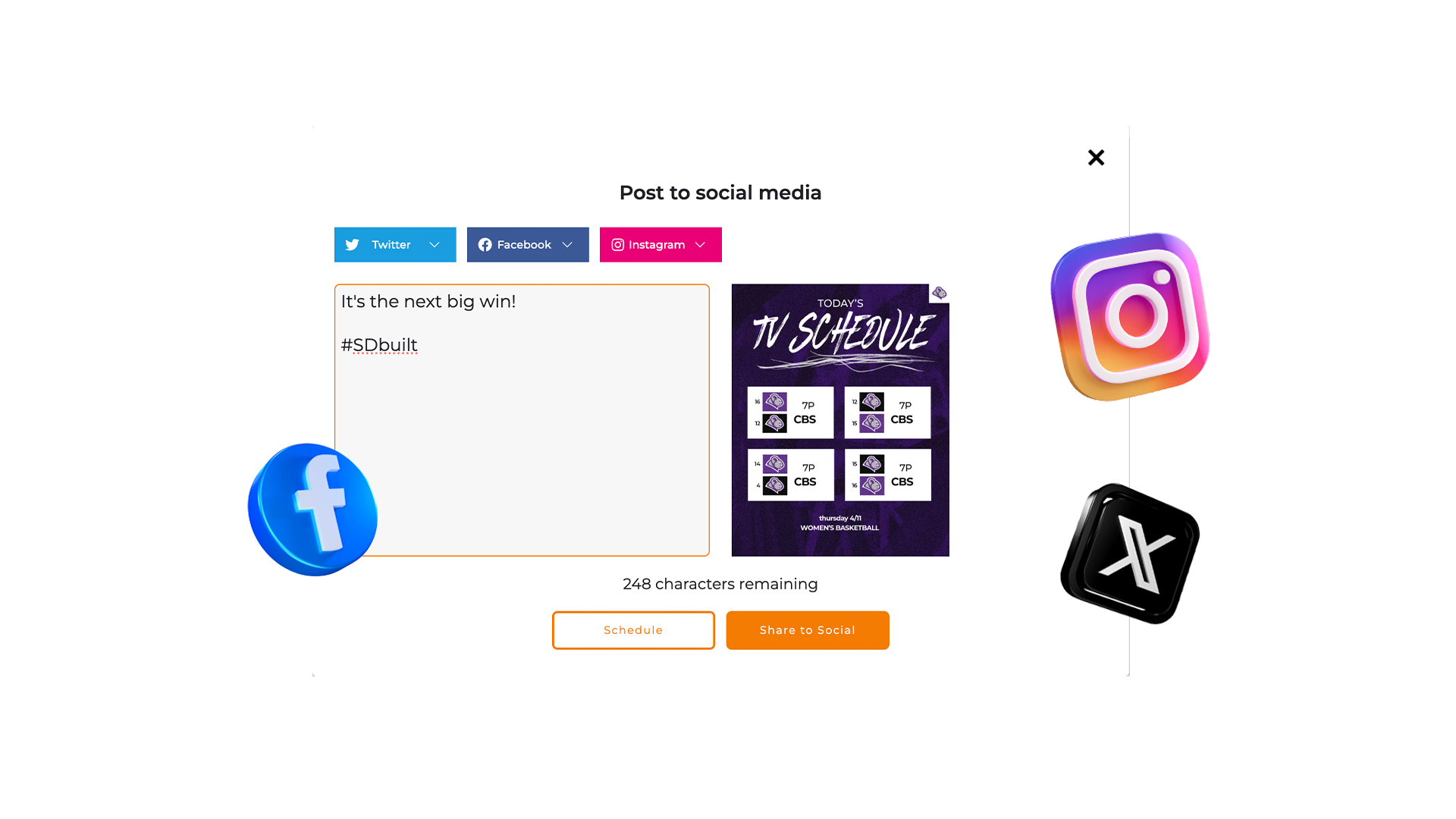 Boost engagement by sharing on-brand content that connects with fans, stakeholders, and your community instantly.